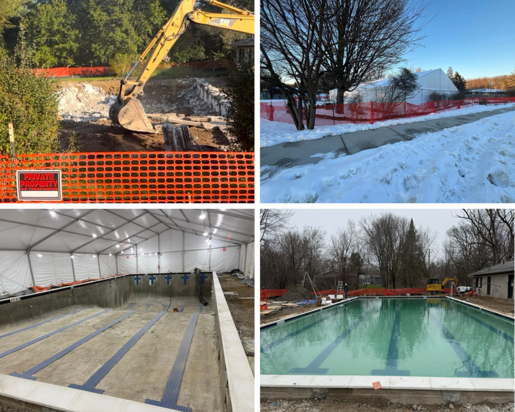 Construction has been underway on the new Forestbrooke Pool since Closing Day 2025. Demolition moved quickly, but a harsh winter added many delays until we committed to a giant tent that kept the work moving amid snow and freezing temps. Soon after the tiles were laid, the pool was filled with water – now we have a glimpse of our next era. We are now on track to open for the 2026 season!